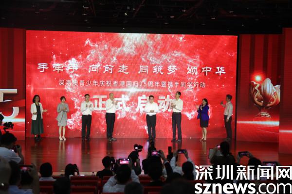 香港教育局局長楊潤雄,澳門教育及青年發(fā)展局副局長黃嘉祺,深圳市委教育工委副書記、市教育局黨組成員楊平分別致辭,充分肯定了攜手同學(xué)行動對深港澳文化交流的貢獻(xiàn),并希望未來三地能有更加深入、密切的聯(lián)系,互惠雙贏,切實增強(qiáng)深港澳青少年的民族自豪感和凝聚力。隨后,領(lǐng)導(dǎo)與港澳青年代表上臺啟動深港澳青少年慶祝香港回歸25周年系列活動。