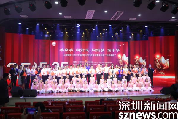 讀特客戶端·深圳新聞網(wǎng)2022年5月25日訊(記者 謝秋平 通訊員 周文干)5月25日下午,由深圳市教育局、深圳海外聯(lián)誼會主辦,深圳市羅湖區(qū)教育局、深圳羅湖海外聯(lián)誼會、深圳市羅湖區(qū)教育科學(xué)研究院承辦,香港深圳青年總會、深圳工程師聯(lián)合會、深圳市羅湖中學(xué)協(xié)辦的“深港澳青少年慶祝香港回歸25周年暨攜手同學(xué)行動成果展”在深圳市羅湖中學(xué)舉行?;顒右浴笆譅渴郑蚯白?,同筑夢,頌中華”為主題,展示了深港澳少年攜手同學(xué)行動的系列成果。深圳市委統(tǒng)戰(zhàn)部二級巡視員周文軍,深圳市委教育工委副書記、市教育局黨組成員楊平,羅湖區(qū)委常委、統(tǒng)戰(zhàn)部部長黃劍峰參加活動,香港教育局局長楊潤雄、澳門教育及青年發(fā)展局副局長黃嘉祺通過網(wǎng)絡(luò)連線方式參與活動?;顒釉诹_湖教育云平臺全程直播,深港澳三地100多所學(xué)校通過線上直播觀看。