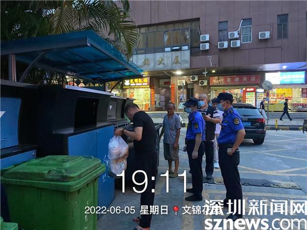 當(dāng)天晚上19點(diǎn)-21點(diǎn),小區(qū)黨員和義工在文錦花園、海富花園垃圾分類投放點(diǎn)與小區(qū)垃圾分類督導(dǎo)員共同開展垃圾分類夜間督導(dǎo)活動,引導(dǎo)居民分類投放垃圾,并為居民詳細(xì)講解和宣傳廚余垃圾分類的相關(guān)知識。同時(shí)聯(lián)同街道執(zhí)法隊(duì)開展“夜間執(zhí)法”,對所檢查的小區(qū)廚余垃圾分出量較低的物業(yè)小區(qū)開展執(zhí)法檢查,一方面指導(dǎo)垃圾分類督導(dǎo)員切實(shí)履職,另一方面對于亂投放垃圾的行為,對其責(zé)令改正。