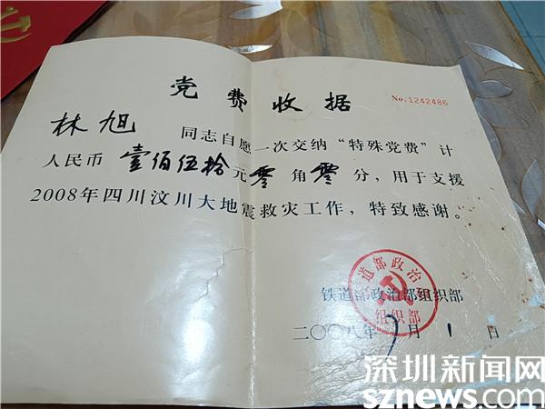 社工首先走進(jìn)的是林旭的家。林旭今年90歲,1959年入黨,黨齡63年。社工們看到了他的“光榮在黨”50年紀(jì)念章,以及一份特殊的黨費收據(jù),這份收據(jù)是他在2008年捐獻(xiàn)給汶川地震的。還有一個紅色本子吸引了社工們的注意力,那是當(dāng)年中華人民共和國鐵道部頒發(fā)的裝卸機(jī)械司機(jī)駕駛證,是他通過一系列考試拿到的,那是他的驕傲。林旭一生都在鐵路上工作,從深圳到廣州南站再回到深圳車站,他堅守一輩子,見證了鐵路從綠皮火車到高鐵的迅猛發(fā)展,言談中充滿了感恩,他說也只有中國共產(chǎn)黨才能做到。