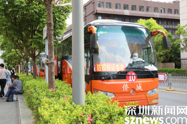 在小區(qū)外,一排防疫轉(zhuǎn)運專車停靠路邊,工作人員有序引導小區(qū)的居民登記上車。
