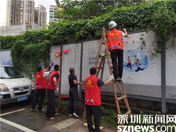 8月12日下午,木棉嶺社區(qū)與中建八局棚改項目黨支部共同組織黨員及志愿者近20人,針對棚改二線路地段的公益廣告圍擋遮擋物進行整治清理。活動中,大家在悶熱潮濕的梅雨天氣中,秉承著不怕臟不怕累的精神,充分發(fā)揮黨員先鋒模范作用,即使被蚊蟲叮咬也沒有絲毫影響積極性。男同志負責剪雜草、砍樹枝,女同志緊隨其后收拾殘枝樹葉,配合默契,經過近兩個小時的清理和保潔,棚改二線路沿路程的公益廣告圍擋光潔如新。
