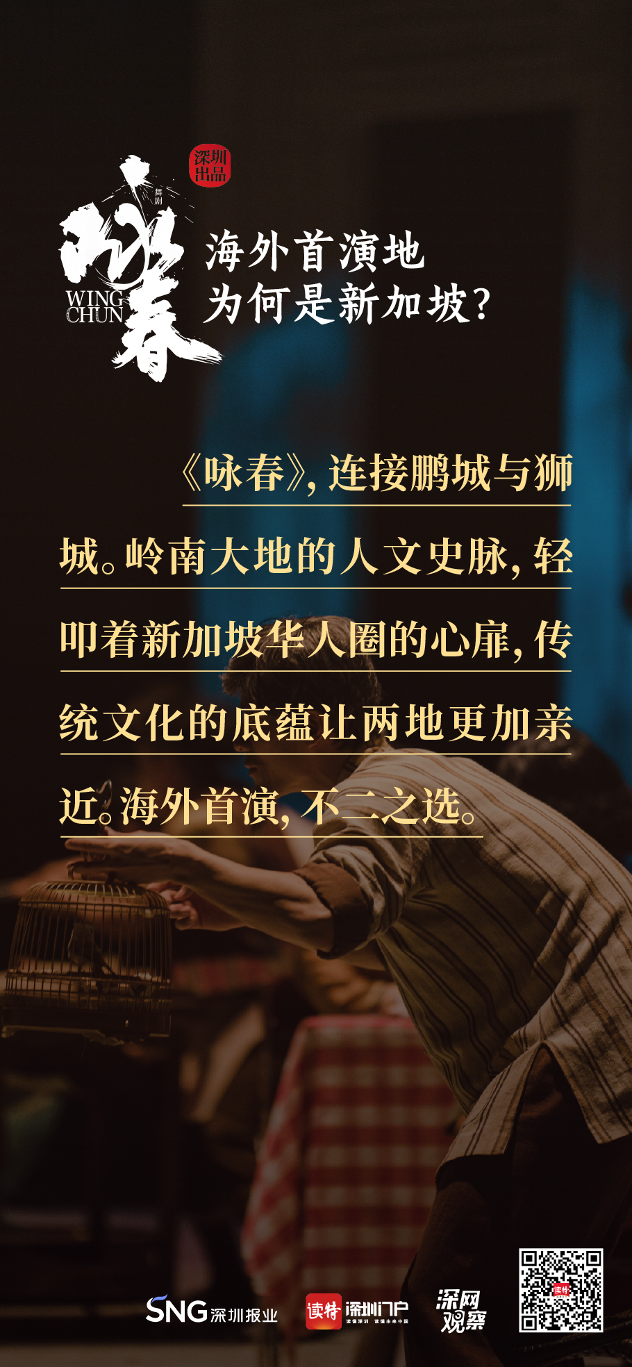 《詠春》書寫平凡英雄的傳奇,開詠春的一扇門,只為追尋心中的那一束光?!对伌骸罚B接鵬城與獅城,嶺南大地的人文史脈,輕叩著新加坡華人圈的心扉,傳統(tǒng)文化的底蘊讓兩地更加親近,海外首演,不二之選。