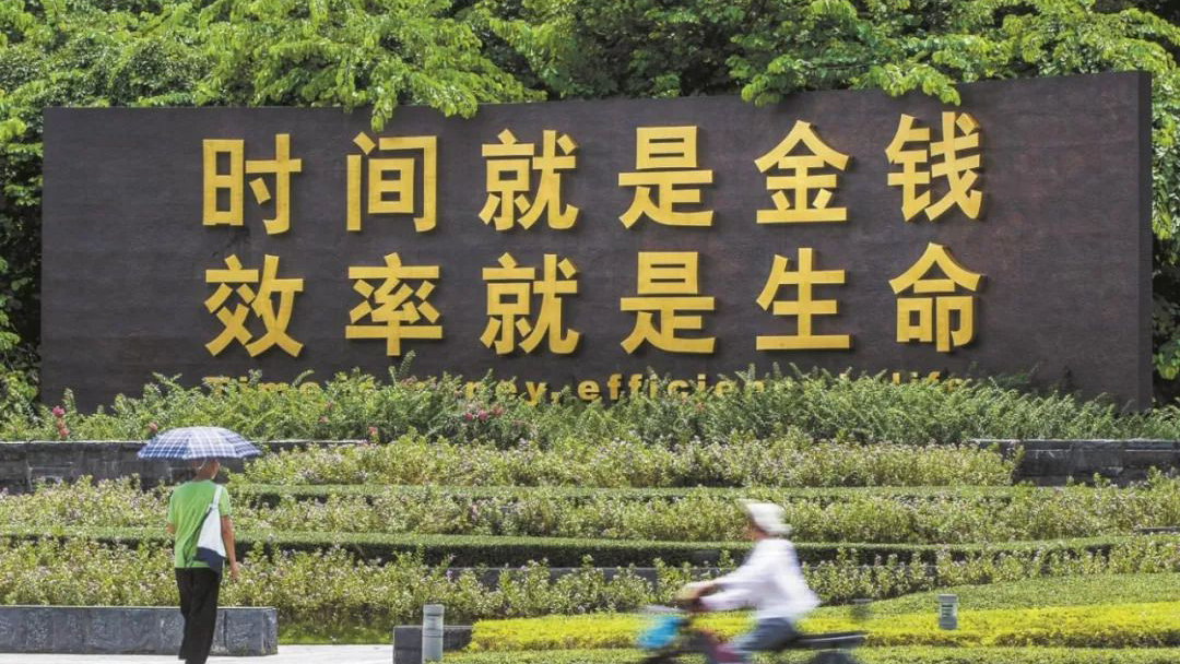 蛇口時間廣場上矗立著“時間就是金錢,效率就是生命”標(biāo)語牌