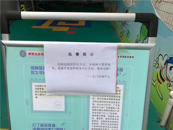 4月6日,記者在羅湖區(qū)東門社康中心看到,該社康貼出了疫苗暫時供應(yīng)不足的告知。記者隨后走訪了其他幾個接種點,一些社康也紛紛貼出了類似溫馨提示。記者了解到,除羅湖外,其他區(qū)的接種點也出現(xiàn)了類似“缺苗”現(xiàn)象。對此,記者采訪了羅湖區(qū)衛(wèi)健局,相關(guān)負(fù)責(zé)人表示,這段時間轄區(qū)新冠病毒疫苗接種率大幅提升,目前缺苗只是暫時性的,正在加強(qiáng)調(diào)配,隨時可能到苗,請大家耐心等待,同時留意相關(guān)提示。