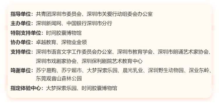 讓閱讀成為動人的風景,讓故事的魅力感動深圳。為助力建設(shè)良好的青少年閱讀環(huán)境,激發(fā)學生閱讀興趣,倡導親子閱讀,共建和諧家庭關(guān)系。2020年,第二十一屆深圳讀書月主題活動“誰是故事大王·第四季”在共青團深圳市委員會、深圳市關(guān)愛行動組委會辦公室的指導下再出發(fā)。更長的活動周期,更豐富的參與形式,更專業(yè)的賽制,“誰是故事大王·第四季”等你來解鎖與挑戰(zhàn)!