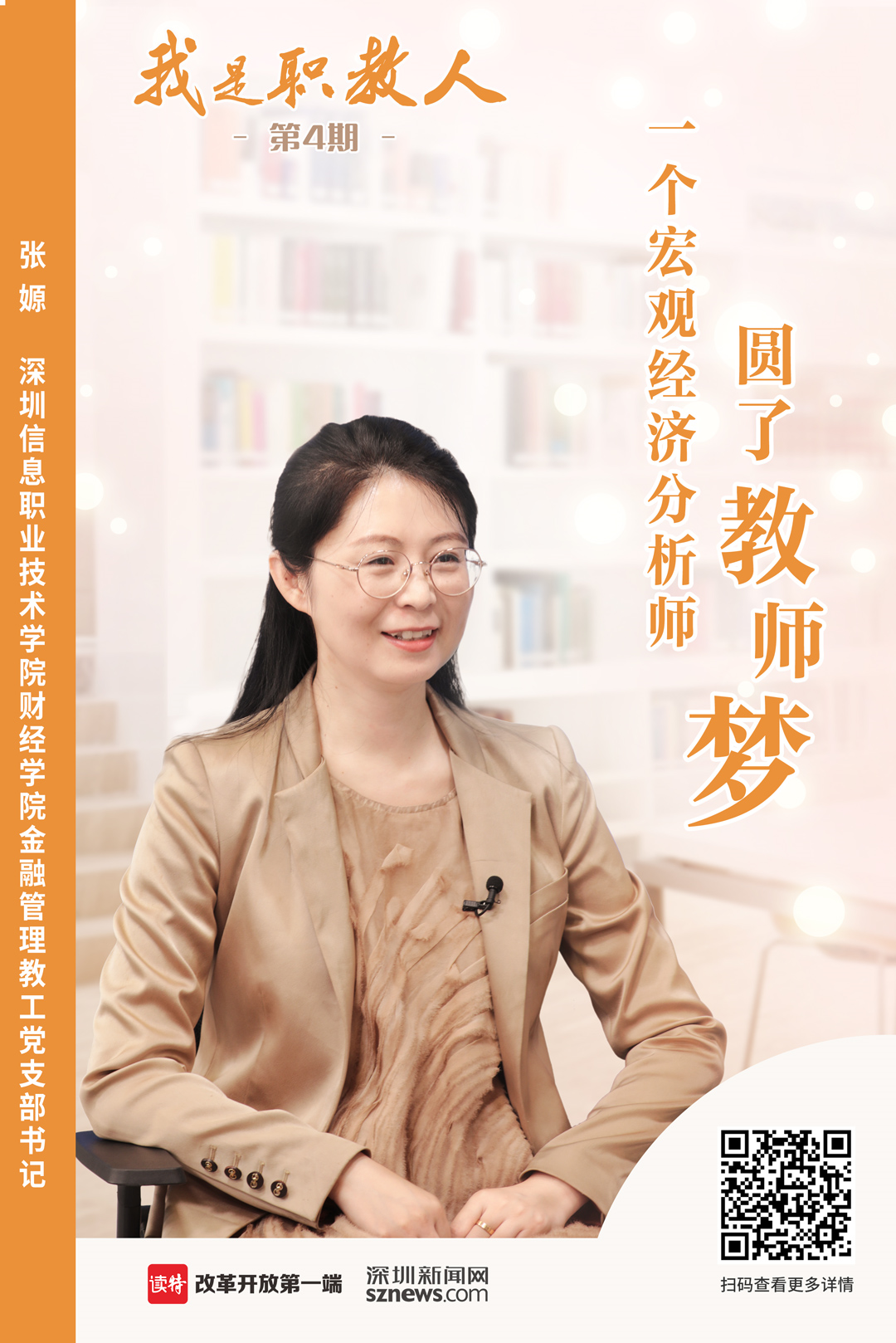 深圳信息職業(yè)技術學院財經學院金融管理教工黨支部書記張嫄,是一名80后的博士研究生,從小夢想成為老師的她在博士畢業(yè)后卻進入了金融行業(yè),從好夢想到好行業(yè)再到好學校,張嫄有著萬花筒般的人生經歷。