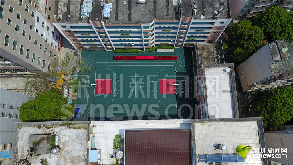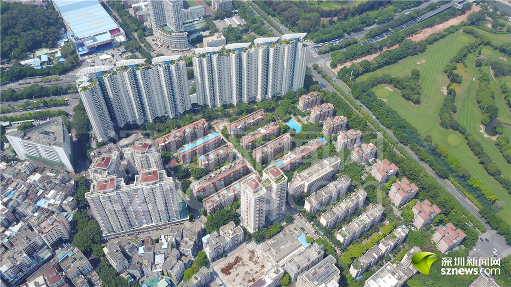 從高空看去,白石洲被高層建筑包圍,高矮對比鮮明