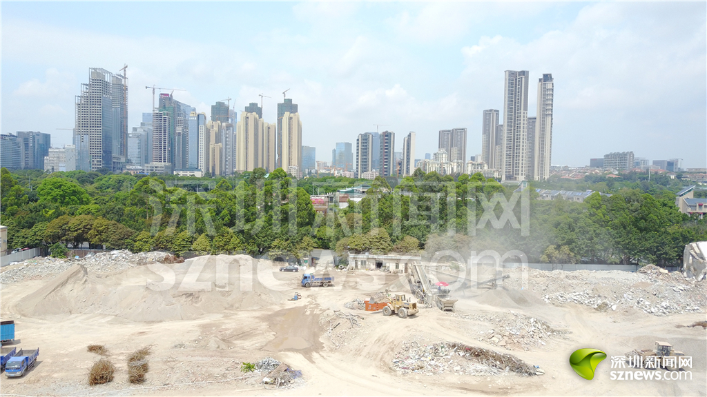 白石洲城中村內的建筑工地,“握手樓”群被推倒,白石洲正在升級