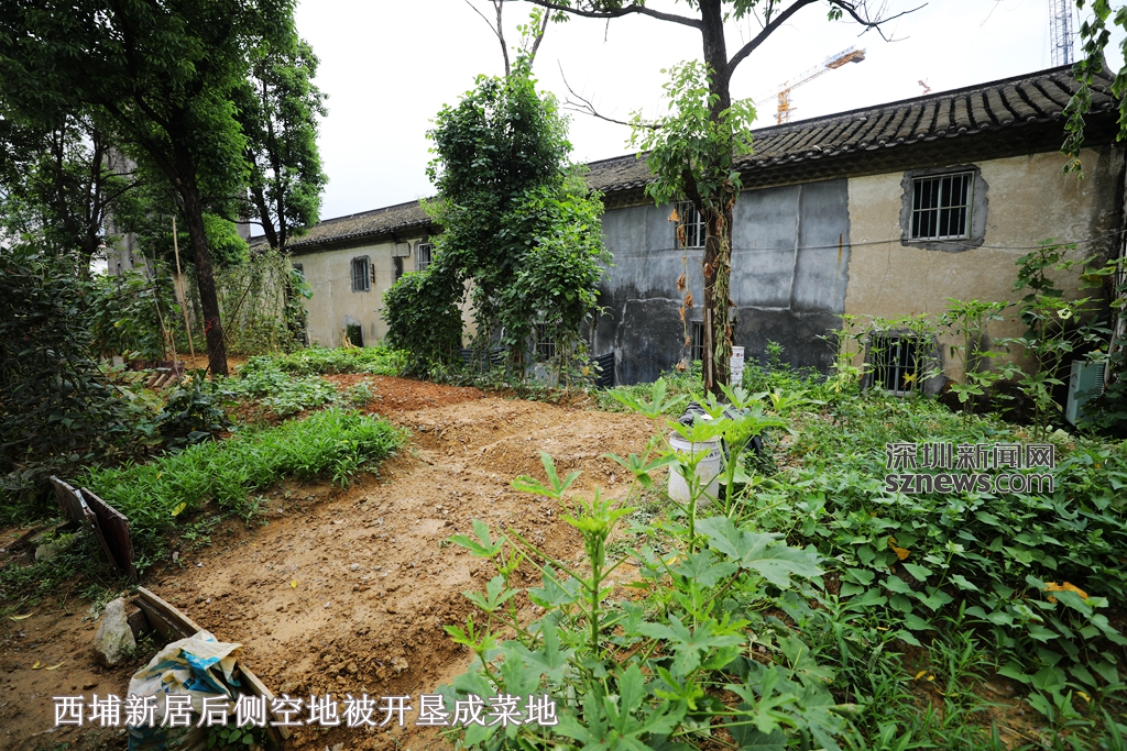 2017年8月的一天,深圳新聞網(wǎng)記者探訪西埔新居,在龍崗“三館一城(公共藝術(shù)館、科技館、青少年宮、圖書(shū)館)”的工地包圍中,我們從萬(wàn)科天譽(yù)學(xué)校的側(cè)門(mén),走過(guò)一段小路,終于看到一半月形的池塘,找到了西埔新居。一位老奶奶正在西埔新居前的空地散步,她指給我們進(jìn)入新居的入口,正門(mén)兩側(cè)的對(duì)聯(lián)“堯天舜日,甘雨和風(fēng)”頗具古風(fēng),又有天下情懷。