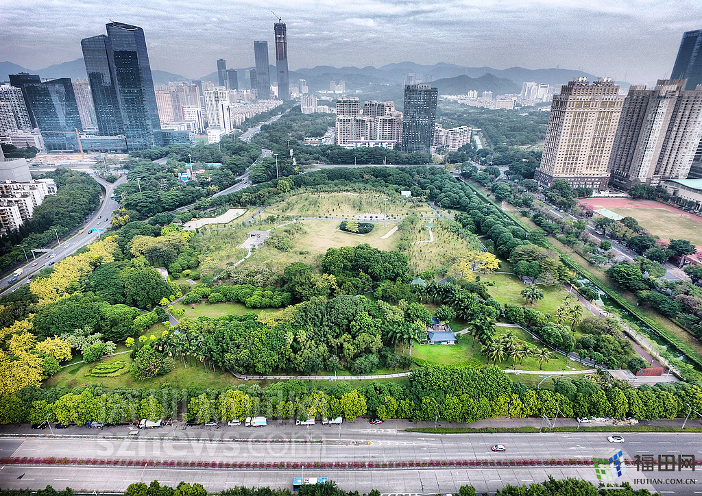 中心公園前身為“800米綠化隔離帶”,占地面積116.8萬平方米。南起濱河路,北至筍崗路,東起華富路、福田路,西至皇崗路,南北長約2.5公里,東西最寬處約800米。1999年改建成市政公園,同年9月28日正式開放。