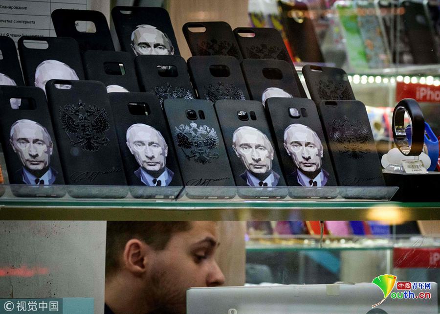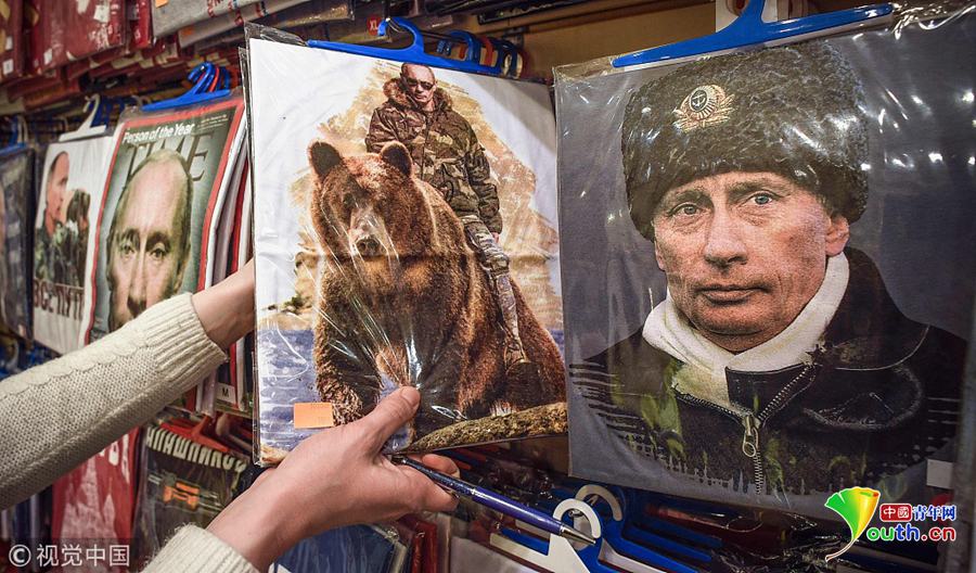 當(dāng)?shù)貢r間2018年3月13日,俄羅斯莫斯科,俄羅斯大選將于3月18日舉行,大選主題紀(jì)念品熱賣。