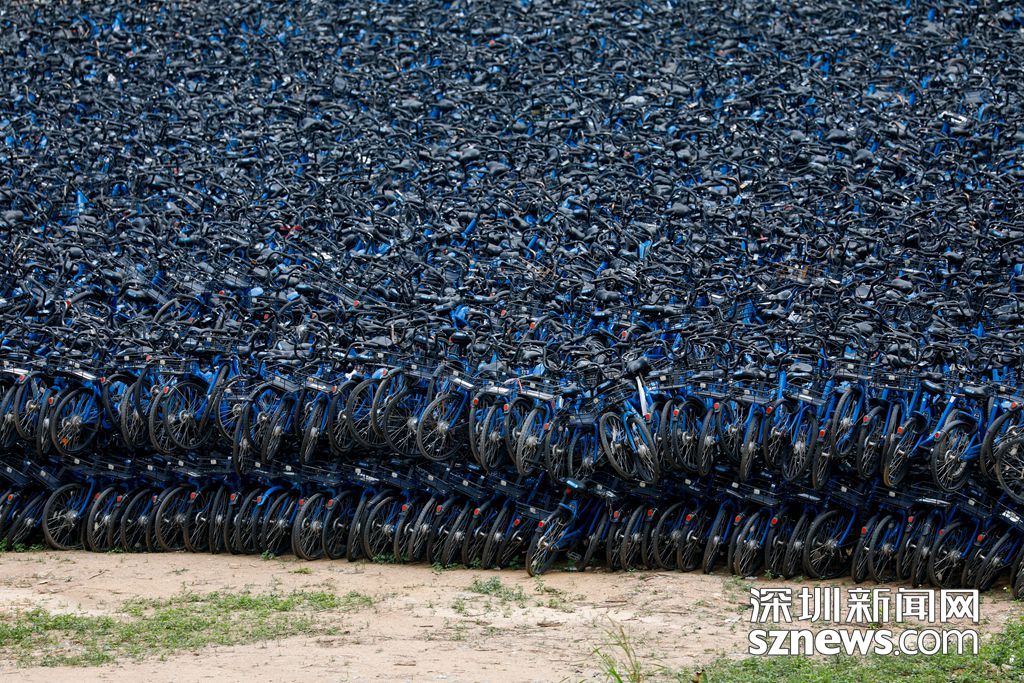 圖為深圳市場(chǎng)投放的小藍(lán)單車目前都集中存放在龍崗區(qū)某處