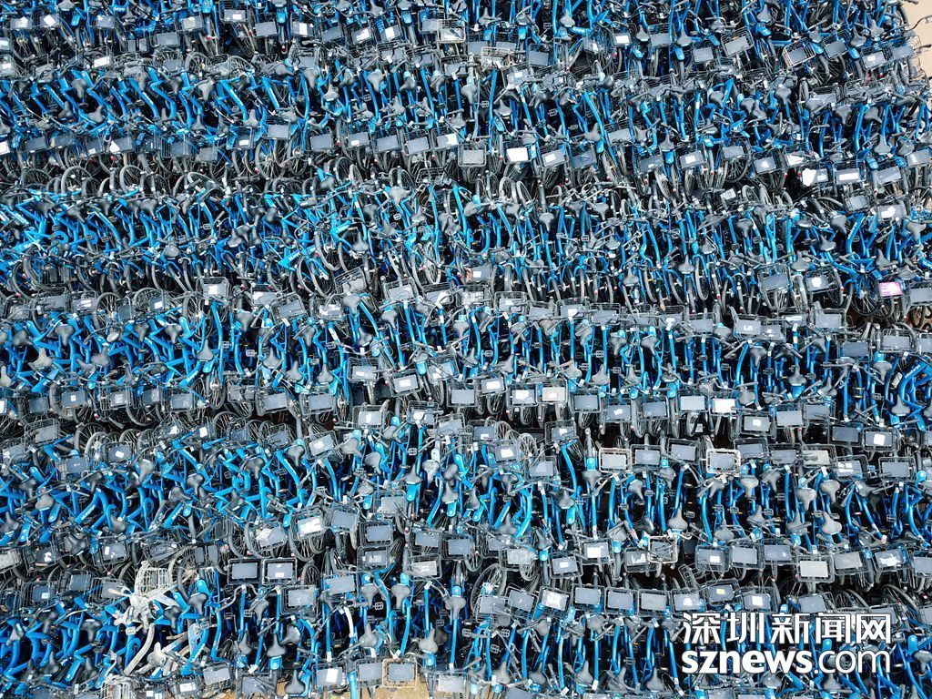 3月19日,深圳新聞網(wǎng)記者用無(wú)人機(jī)拍到了一組畫面,鏡頭下,層層疊疊堆放的藍(lán)色單車相當(dāng)震撼。這塊空地位于龍崗區(qū)怡美苗圃場(chǎng)附近,原本只是花圃,如今成為小藍(lán)單車的堆放場(chǎng)。