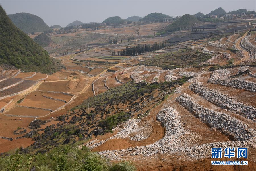 西疇縣興街鎮(zhèn)“三光”片區(qū)石漠化綜合治理工作接近尾聲,一片片石山被壘成臺地(2016年4月14日攝)。荒山禿嶺,怪石盤亙;河道斷流,重山阻隔。這是云南西疇,一個被專家稱為“失去生存條件”的地方。就在這樣一個地方,當?shù)馗刹咳罕娨浴暗炔皇寝k法,干才有希望”的奮斗精神,戰(zhàn)天斗地、自力更生。目前,西疇縣公路密度是全省3倍,行政村、自然村通公路率均達100%。今年,西疇縣計劃脫貧摘帽。新華社記者吉哲鵬攝