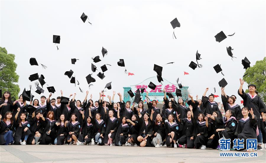 6月10日,畢業(yè)生們?cè)跉g樂(lè)谷廣場(chǎng)上拍合影。