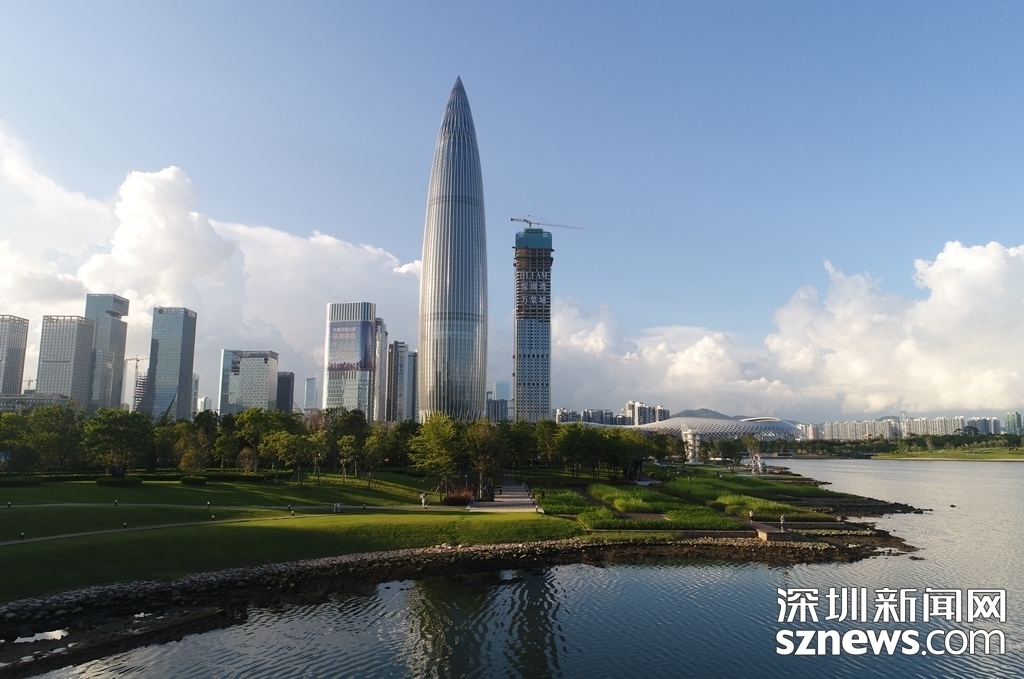 從人才公園看華潤(rùn)大廈和深圳灣體育館