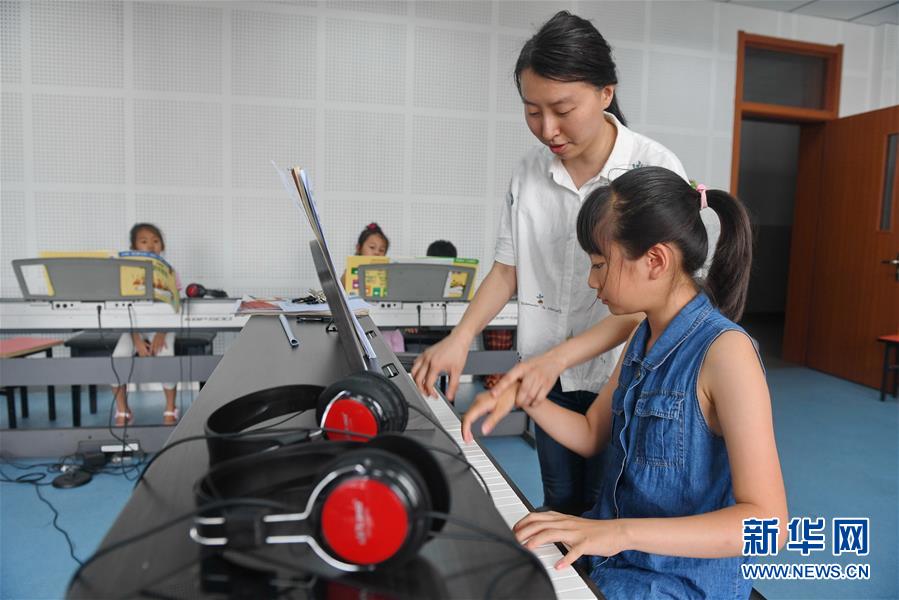 7月16日,在長春市少年宮,教師邢晨(右二)給學生上鋼琴課。