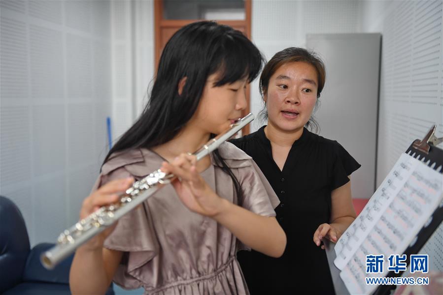 7月16日,在長(zhǎng)春市少年宮,教師張佳(右)給學(xué)生上長(zhǎng)笛課。