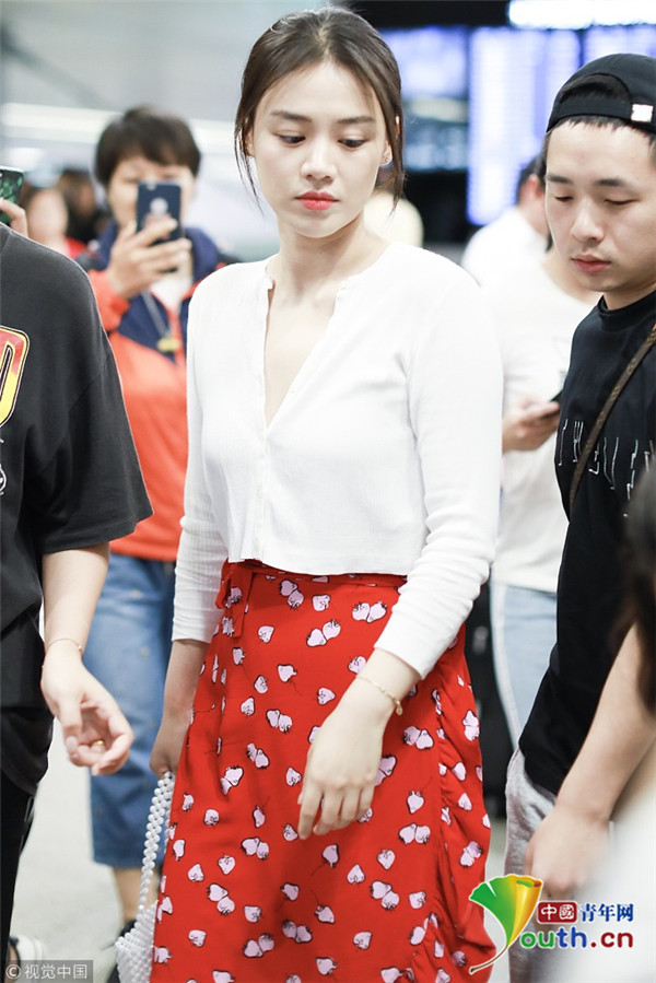 2018年7月31日,“水月”馬思純從北京飛往上?,F身機場,她身穿草莓圖案大紅裙,手提櫻桃小竹籃,造型清新甜美,搭配深V白襯衫,美胸若隱若現,平添小性感。