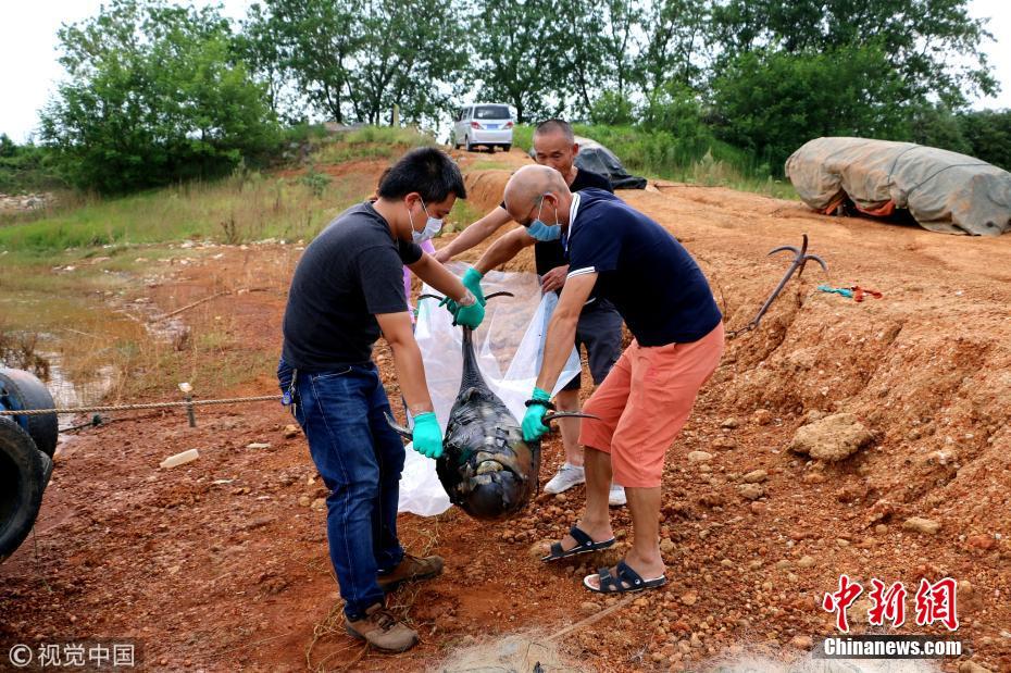 當(dāng)日16時(shí)許,中科院武漢水生所專家趕到現(xiàn)場,經(jīng)解開江豚身上的絲網(wǎng)發(fā)現(xiàn),這頭雄性成年江豚身體無明顯外傷,體重約35公斤,體長1.38米。該水生所段姓研究員判斷,該頭江豚應(yīng)該是被絲網(wǎng)纏住身體后無法掙脫,不能躍出水面呼吸最后導(dǎo)致溺亡,非??上?。當(dāng)天下午,水生所專家將這頭死亡江豚帶回解剖并制作標(biāo)本。洪永林 攝 圖片來源:視覺中國 文字來源:九江新聞網(wǎng)