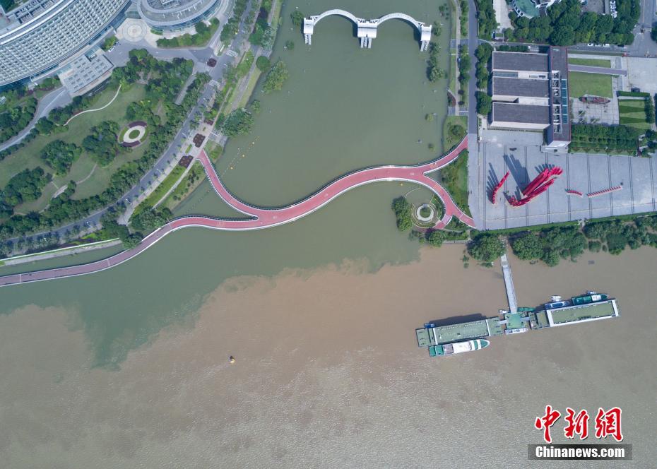 7月10日,航拍長江與南京秦淮河交匯處,江水與河水“涇渭分明”。當日,江蘇水利廳發(fā)布的水情信息顯示,長江南京段水位已降至警戒線以下。中新社記者泱波 攝