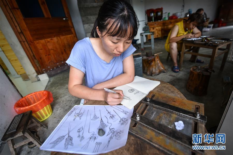 唐白梅是美國一所高校首飾設(shè)計專業(yè)的在讀研究生,專門利用暑假時間到雷山縣學習銀飾工藝。“以前挑著擔賣貨,賣不完回不了家;現(xiàn)在有了網(wǎng)上銷售,太方便了?!痹谫F州省黔東南苗族侗族自治州雷山縣西江鎮(zhèn)控拜村,50歲的銀匠龍懂陽拿著手機查看全國各地發(fā)來的銀飾訂單,七月份的銷售額輕松超過了一萬元。雷山縣的銀匠主要集中在控拜、麻料、烏高三個村,銀飾加工已經(jīng)有600多年歷史。作為銀匠家族的第九代傳人,龍懂陽從14歲開始便挑著銀飾走村串鄉(xiāng),上門推銷。但山鄉(xiāng)偏僻路途遙遠,客源又有限,這種方式僅能勉強維持收支。為了賺錢,龍懂陽放棄了傳統(tǒng)手藝,到溫州打工賣皮鞋。隨著家鄉(xiāng)的道路修通,苗寨的游客越來越多,銀飾品打開了新銷路。2014年,龍懂陽建起了銀匠鋪,重拾本行。在當?shù)胤鲐毟刹亢涂腿说膯l(fā)下,他建起了銀飾展示廳,開了網(wǎng)店,線上訂單源源不斷。