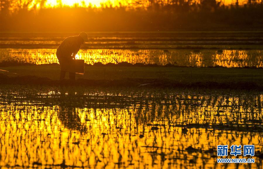 夕陽西下,村民在新疆察布查爾錫伯自治縣種羊場托海依村的一處農(nóng)田里勞動(dòng)(5月21日攝)。近日,隨著氣溫漸高,地處新疆伊犁河谷的察布查爾錫伯自治縣迎來插秧高峰期,田間地頭一派繁忙景象。塊塊稻田水滿如鏡,田間防護(hù)林枝繁葉茂,遠(yuǎn)處雪山依稀可見,如一幅在大地上鋪展開的生態(tài)畫卷。新華社記者胡虎虎 攝