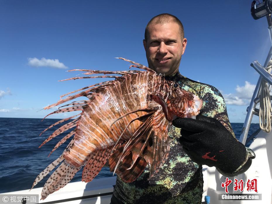 厲害了我的捕魚達(dá)人!男子捕獲獅子魚中“哥斯拉”