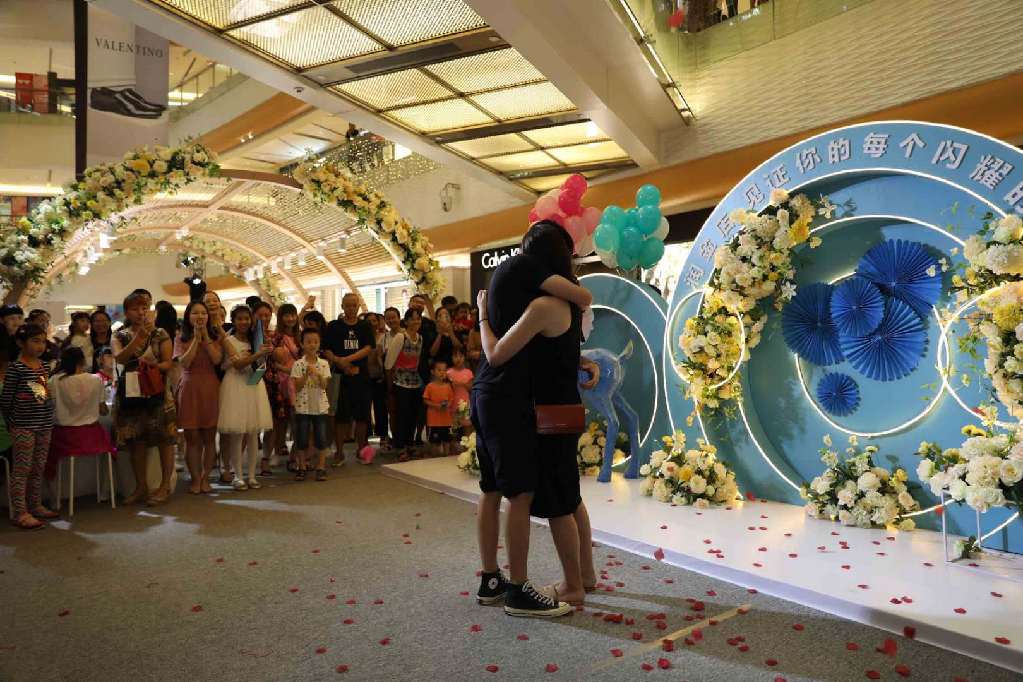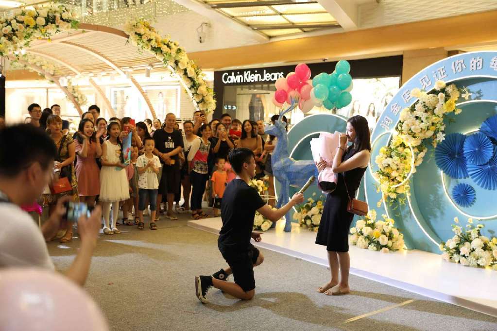 開幕式當天,潤金店工作人員還配合市民楊先生上演了一場浪漫的“求婚大作戰(zhàn)”。原來,數(shù)日前,楊先生到潤金店表示要買一枚與眾不同的戒指向女友求婚。在銷售顧問的建議下,楊先生選購了一枚藍寶石戒指作為求婚信物。得知楊先生的心意后,潤金店品牌策劃部決定與楊先一起在七夕當天完成這場浪漫的“求婚大作戰(zhàn)”。當天,楊先生帶著毫不知情的女友來到潤金店“炫出色彩 耀你不凡”VIP品鑒會現(xiàn)場。正當女友全神貫注欣賞小提琴、拉丁舞等開幕式表演節(jié)目時,楊先生從兜里掏出事先準備好的藍寶石戒指,單膝跪地向一臉茫然的女友喊:“嫁給我吧?!贝藭r,開幕式現(xiàn)場背景音樂“配合”地換成了甜蜜的《今天你要嫁給我》。感動得熱淚盈眶的女友在圍觀市民的歡呼中,拉起了楊先生,并答應(yīng)了他的求婚。圍觀市民表示“七夕不過是路過,卻不料狠狠地吃了一把狗糧?!?/p>