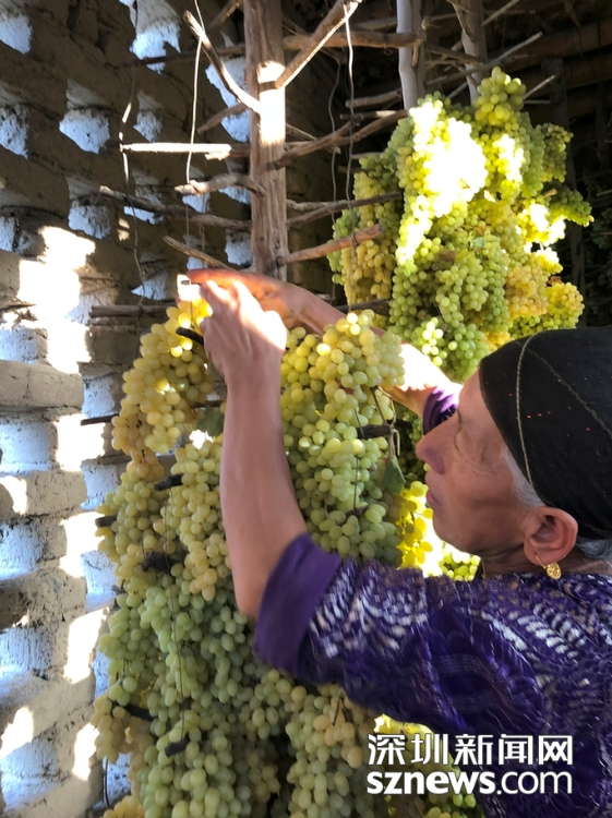 維族老鄉(xiāng)告訴我們,葡萄干的制作有三種方法:太陽(yáng)曬干、樹(shù)上風(fēng)干、土房晾干。趙春麗攝