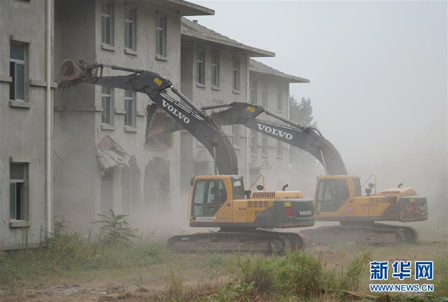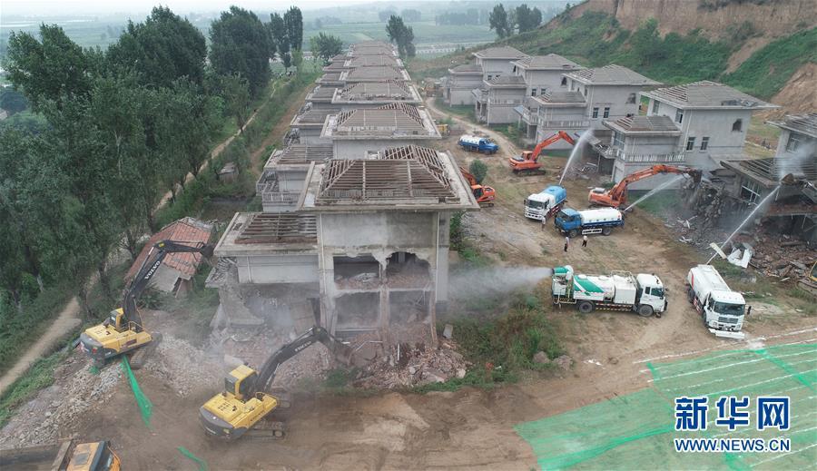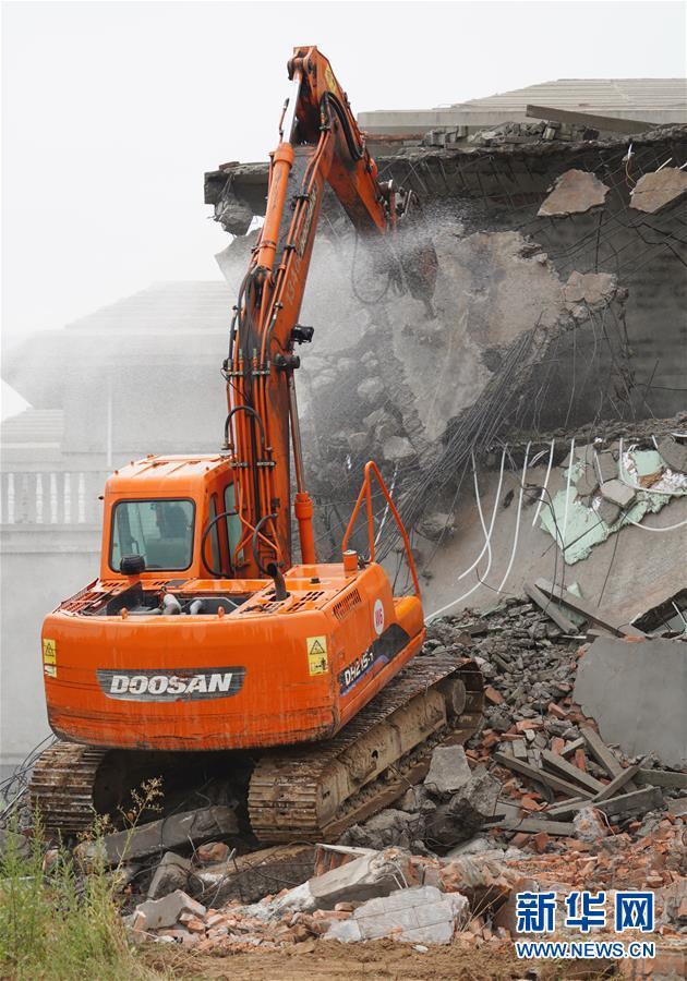 9月6日,施工人員在對拆除中的別墅進行噴淋降塵作業(yè)。 新華社記者 邵瑞 攝