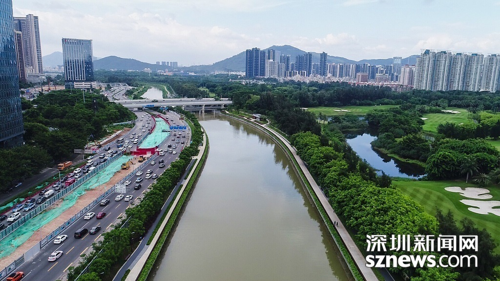 大沙河整條河流呈倒“L”型,如一條蜿蜒美麗的“綠色飄帶”,把南山區(qū)南北兩個(gè)片區(qū)串起,構(gòu)建山水相依、水城共融的城市特質(zhì)。