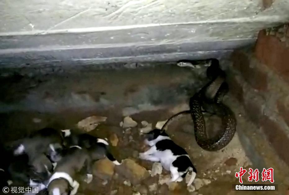 9月20日訊(具體拍攝時間不詳),印度奧里薩邦,一只寵物狗勇敢地挽救了新生幼犬的生命,它擊退了一條可怕的眼鏡蛇。面對一條巨大的斑點眼鏡蛇——世界上最毒的蛇之一——這位新媽媽勇敢保護僅出生兩天的幼崽。但不幸的是,盡管狗狗盡了最大的努力,蛇還是在救援人員救出幼犬之前仍殺死了4只小狗。圖片來源:視覺中國