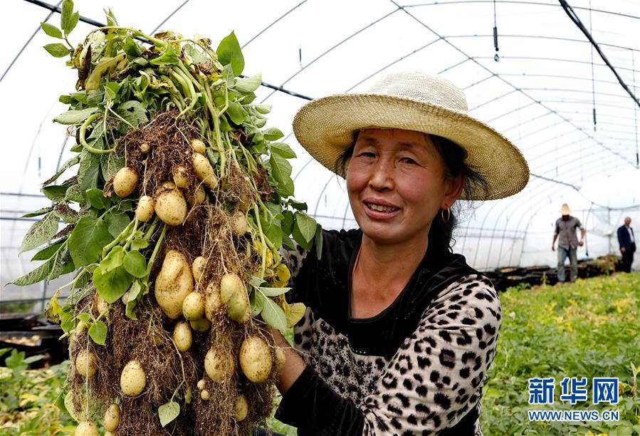 9月23日,張北縣小二臺(tái)鎮(zhèn)一家馬鈴薯育種中心的工人在大棚內(nèi)展示收獲的脫毒微型薯。 近年來,地處壩上地區(qū)的河北省張北縣因地制宜,積極推進(jìn)馬鈴薯產(chǎn)業(yè)化發(fā)展,形成了馬鈴薯繁種育種、商品薯種植、倉儲(chǔ)、加工為一體的產(chǎn)業(yè)鏈,帶動(dòng)農(nóng)民增收致富。 新華社記者楊世堯攝