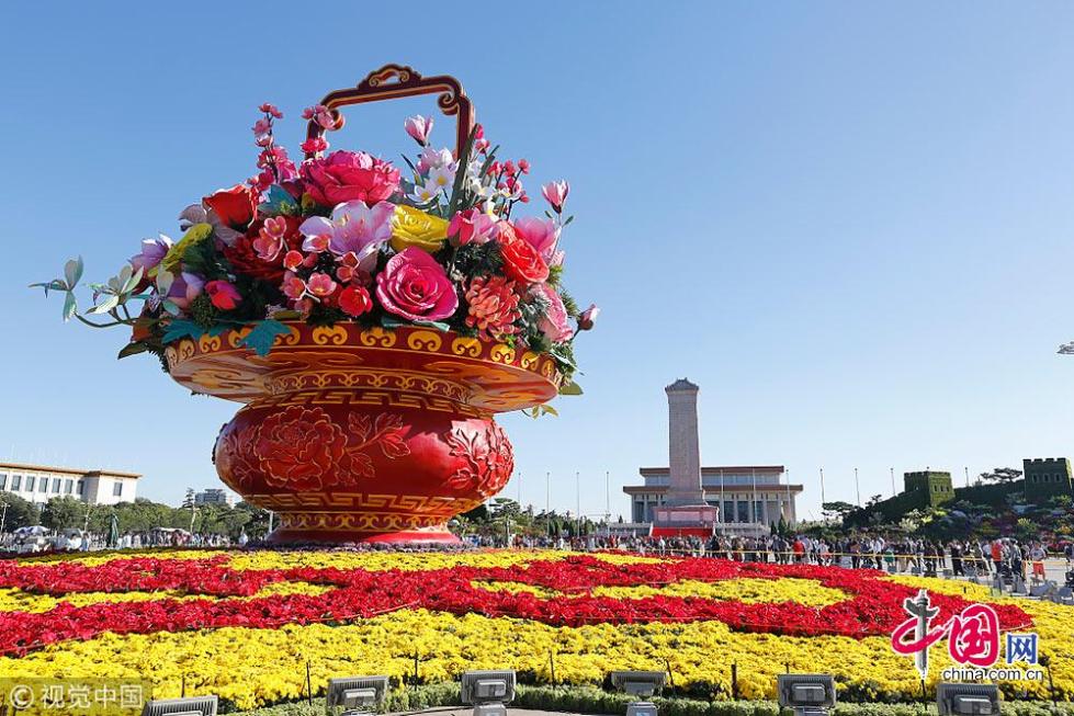 2015年的大花籃規(guī)格與往年相似,花籃依然采用正紅色,同時用金色祥云描邊,提梁為紅色鑲嵌金邊的長方形,頂端再裝飾一朵凸起的祥云。花籃里已經(jīng)有20支左右的花朵,有大紅色的牡丹、玫紅色的月季,再調(diào)和以亮黃色的向日葵,粉色的玉蘭從花籃東側(cè)旁逸斜出,兩束紅梅分別繞著花籃的一側(cè)提梁向上伸展,中間點綴著些粉色桃花。花籃下方放著白花黃蕊的水仙和一些綠色植物,整體配色典雅大氣,富有節(jié)日氣氛。
