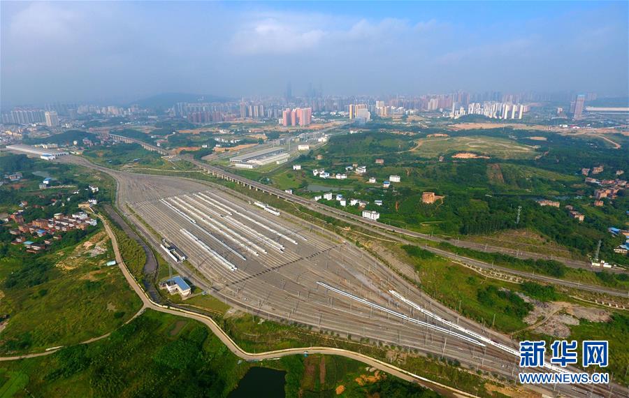 這是廣西南寧動車所內(nèi)準(zhǔn)備發(fā)往各地的動車組列車(7月1日無人機(jī)拍攝)。 廣西壯族自治區(qū)成立60年來,鐵路建設(shè)發(fā)生翻天覆地的變化。來自中國鐵路南寧局集團(tuán)有限公司的數(shù)據(jù)顯示,1958年廣西鐵路總里程為1346.3公里,如今廣西鐵路總里程達(dá)5191公里。廣西與周邊相鄰省份間實(shí)現(xiàn)動車“公交化”開行。此外,北部灣港—重慶班列、東盟海產(chǎn)品冷鏈班列、“百色一號”果蔬專列等的開通和運(yùn)營,強(qiáng)化了鐵路供給的針對性和有效性。鐵路成為助推廣西經(jīng)濟(jì)社會快速發(fā)展的“大動脈”。 新華社記者黃孝邦攝