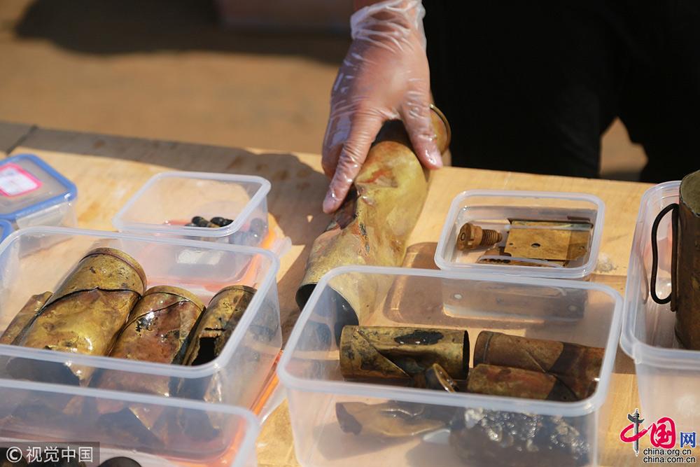 2018年9月25日,遼寧大連,在莊河黑島海域甲午戰(zhàn)爭“經(jīng)遠艦”遺址出水的各類遺物標本。視覺中國