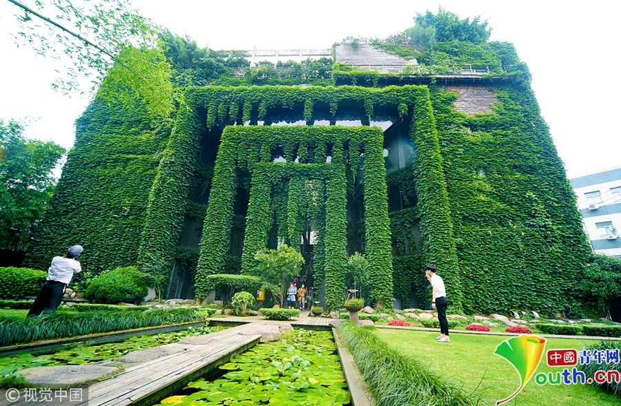 航拍句容“植物建筑”:整棟大樓種滿綠樹小草