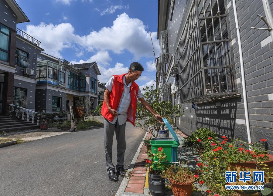 9月27日,小浦鎮(zhèn)合溪村垃圾分類督察員黃秋華在進(jìn)行垃圾分類巡查,并用APP進(jìn)行登記。從9月初開始,浙江省長興縣小浦鎮(zhèn)推廣使用手機(jī)垃圾分類智能管理平臺。通過這款A(yù)PP可以進(jìn)行村民垃圾分類情況打分、清運(yùn)員每日簽到、監(jiān)督員巡查等,并能即時生成農(nóng)戶垃圾分類“成績單”,所有農(nóng)戶均可通過APP查詢垃圾分類排行榜,既方便又環(huán)保。新華社記者 徐昱 攝