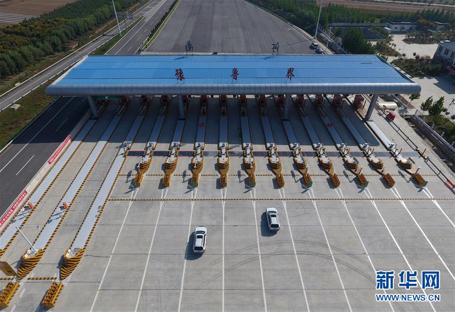 9月28日,車輛通過河南省南樂縣的南(樂)林(州)高速豫魯界收費站。新華社記者 馮大鵬 攝