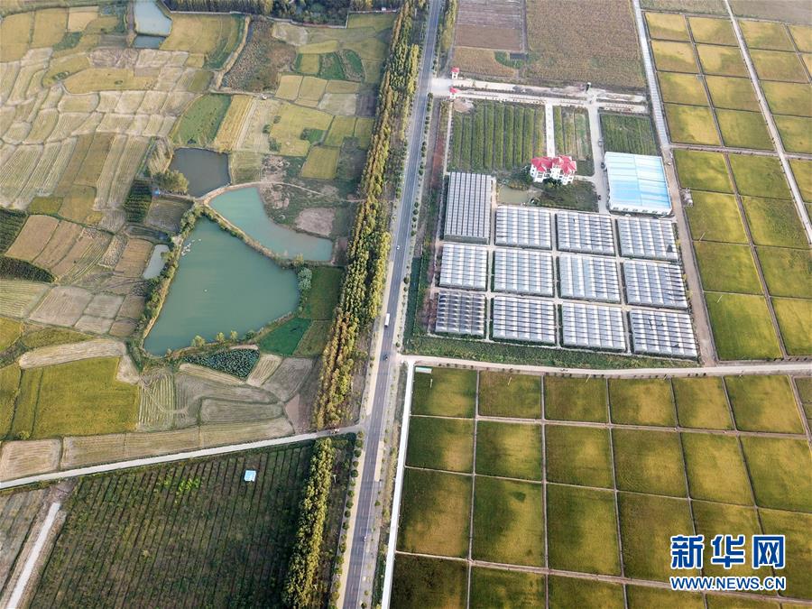 這是安徽鳳陽小崗村友誼大道(9月27日無人機拍攝)。 新華社記者 張端攝