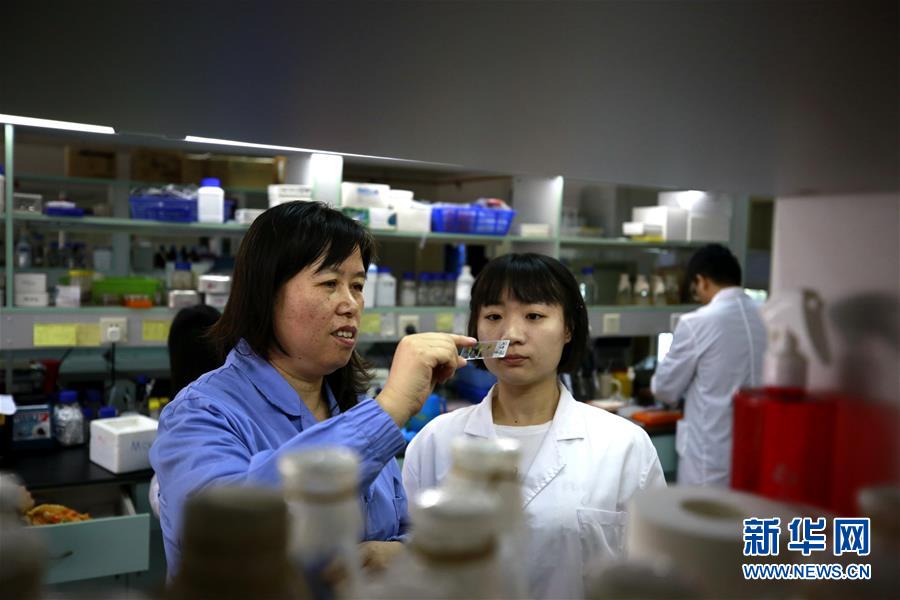 中科院植物生理生態(tài)研究所鄭慧瓊研究員(左)和學(xué)生在實驗室研究擬南芥(9月14日攝)。新華社記者張建松攝
