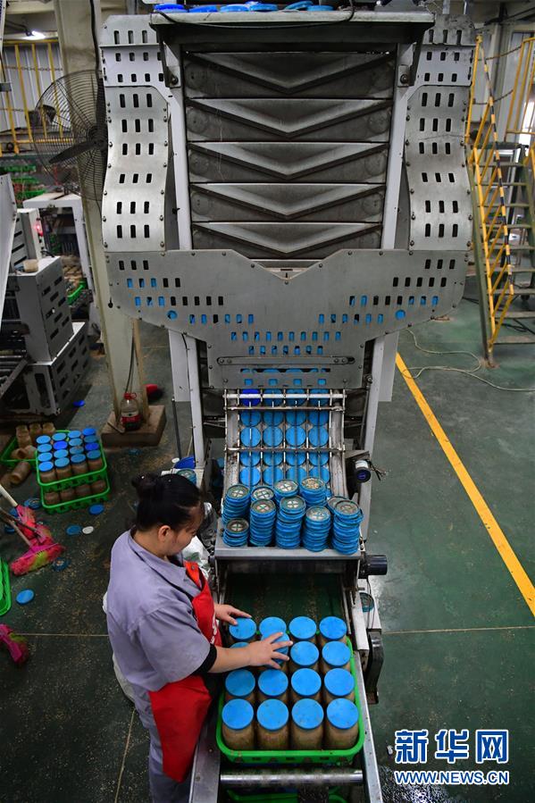 在位于清豐縣的河南龍豐實(shí)業(yè)股份有限公司,一名工人在裝瓶車間查看食用菌栽培瓶裝瓶情況(9月28日攝)。新華社記者馮大鵬攝