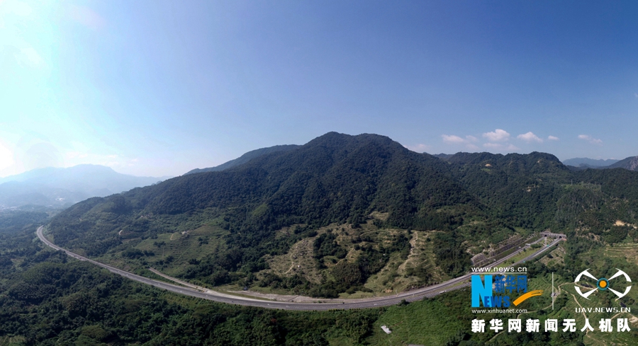 這是改擴建工程施工之后的風(fēng)霜嶺隧道外景觀。道路拓寬,坡度平緩(無人機拍攝)。新華網(wǎng) 肖和勇 攝