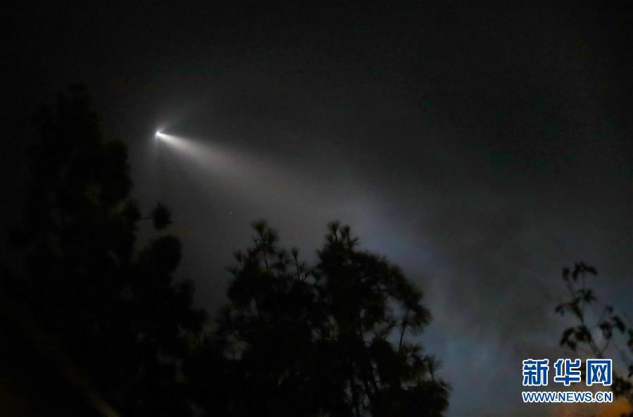 這是10月7日在美國洛杉磯拍攝的“獵鷹9”火箭發(fā)射升空后的景象。 美國太空探索技術(shù)公司7日用一枚“獵鷹9”火箭成功將阿根廷一顆地球觀測衛(wèi)星送入太空,并首次在美國西海岸成功實現(xiàn)火箭第一級的陸地回收。 新華社記者李穎攝