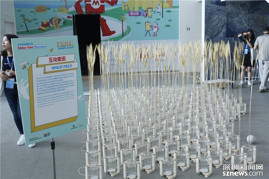 場(chǎng)館內(nèi)設(shè)計(jì)的互動(dòng)麥田項(xiàng)目,當(dāng)人走進(jìn)時(shí),棵棵麥稈便會(huì)搖動(dòng),整體形成陣陣麥浪