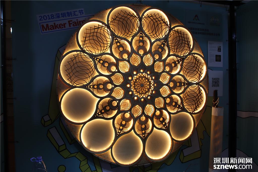在主會(huì)場一樓展廳內(nèi),一款由激光切割制作的燈具十分精美