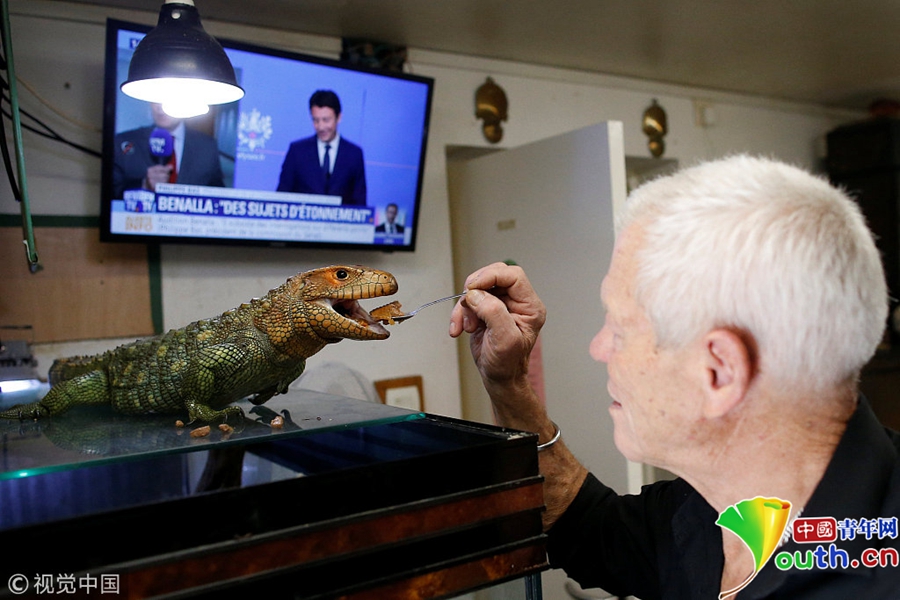 中國青年網(wǎng)北京9月21日電 當(dāng)?shù)貢r間2018年9月19日,法國67歲的法國男子Philippe Gillet與400多只爬行動物生活在一起,有鱷魚、蜥蜴、眼鏡蛇等等。