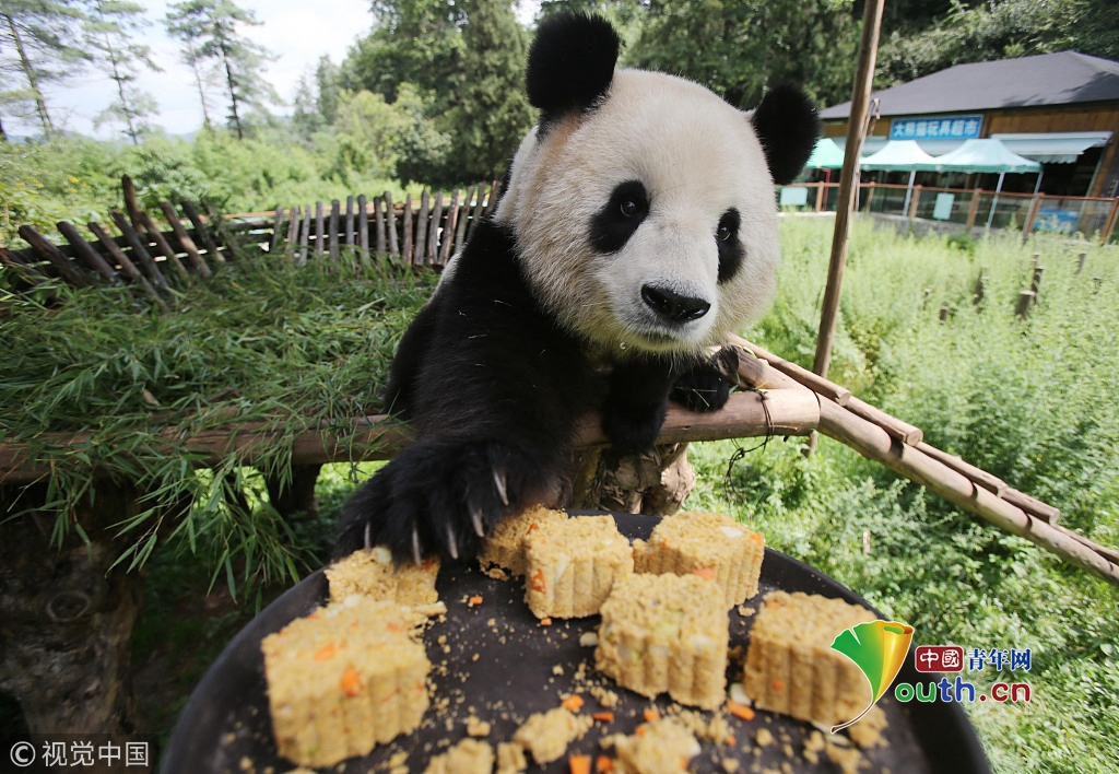 2016年9月10日,重慶,中秋節(jié)即將來臨,飼養(yǎng)員們給一些動物也發(fā)放了“月餅”,根據(jù)不同的動物選擇不同的食材。